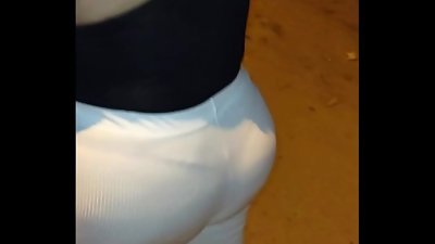 巨大的驴老妞穿着透明紧身裤在街上穿梭