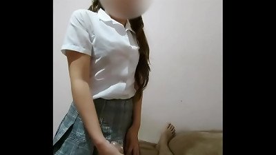 泰国给一个有钱人口交,然后被插入,当时她还穿着校服,精液沾满了她的裙子。